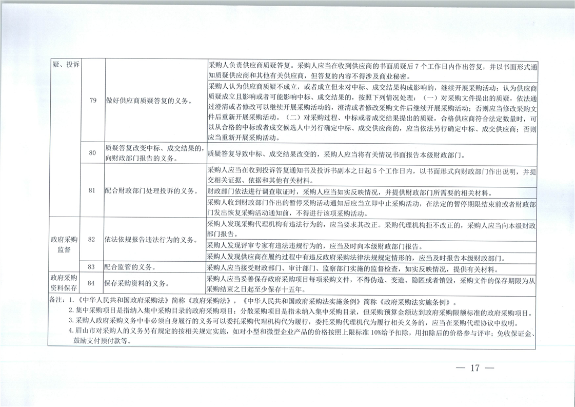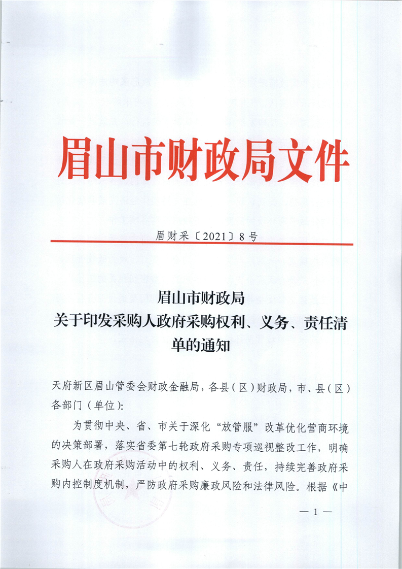 關(guān)于印發(fā)采購(gòu)人政府采購(gòu)權(quán)利、義務(wù)、責(zé)任清單的通知 地址:眉山市東坡區(qū)眉州大道東三段186號(hào)天天向上5幢1單元11層3號(hào)